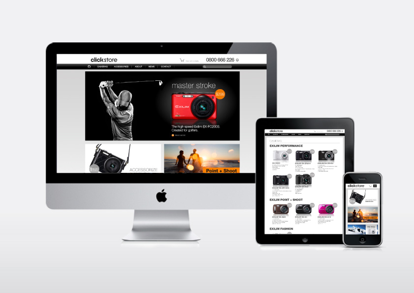 Our brief was to create the identity for the Clickstore brand and create an engaging online retail experience across desktop, mobile and tablet. Key features of the site are the responsive website design and direct CRM integration connecting to the companies warehouse and inventory control system.