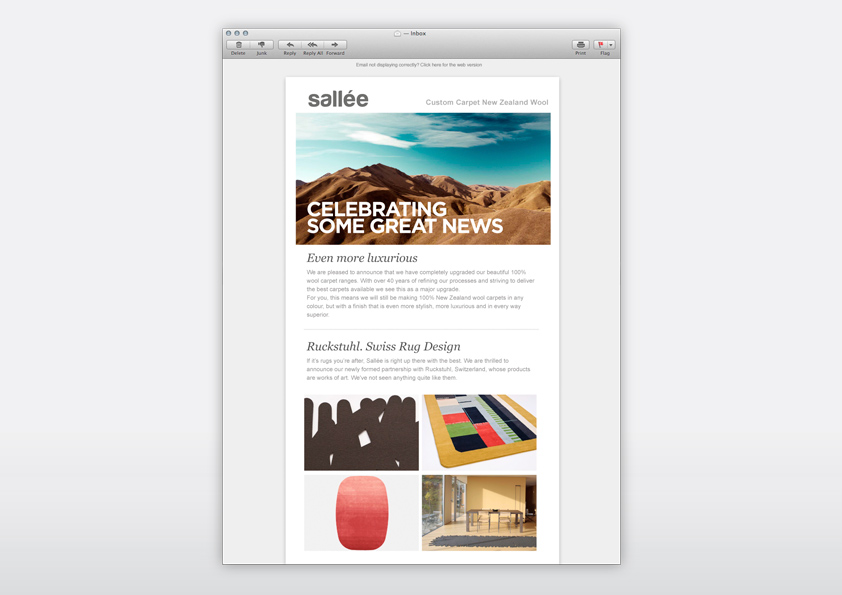 Sallee has gained an enviable reputation for manufacturing the high quality carpets and rugs using 100% New Zealand wool. They specialise in hand dying wool yarns to produce a carpet in any colour you can imagine.